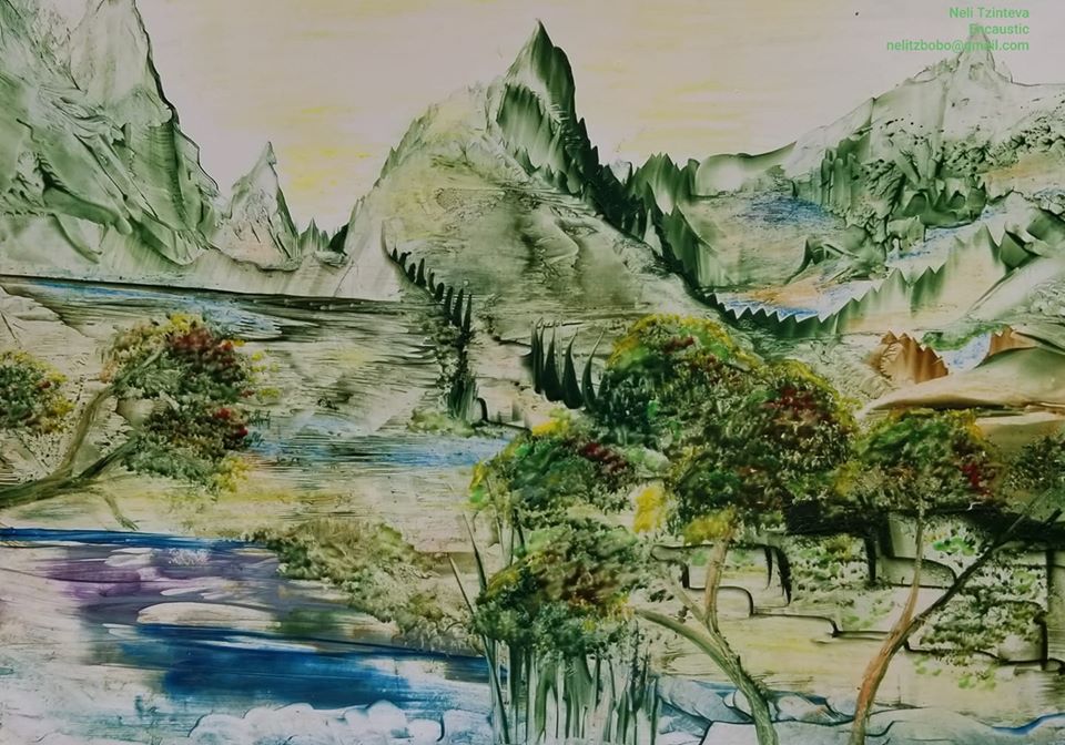 Encaustic art -Neli Tzintzeva “Somewhere in the mountains”8х6in