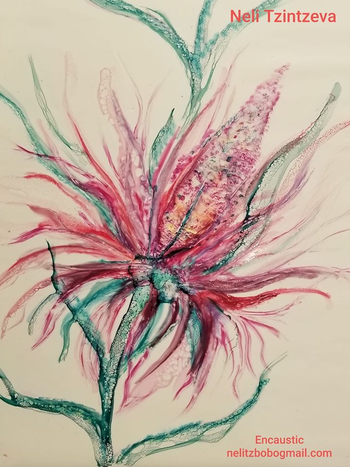 “The flower of love” Encaustic art -Neli Tzintzeva 8x10in-175$