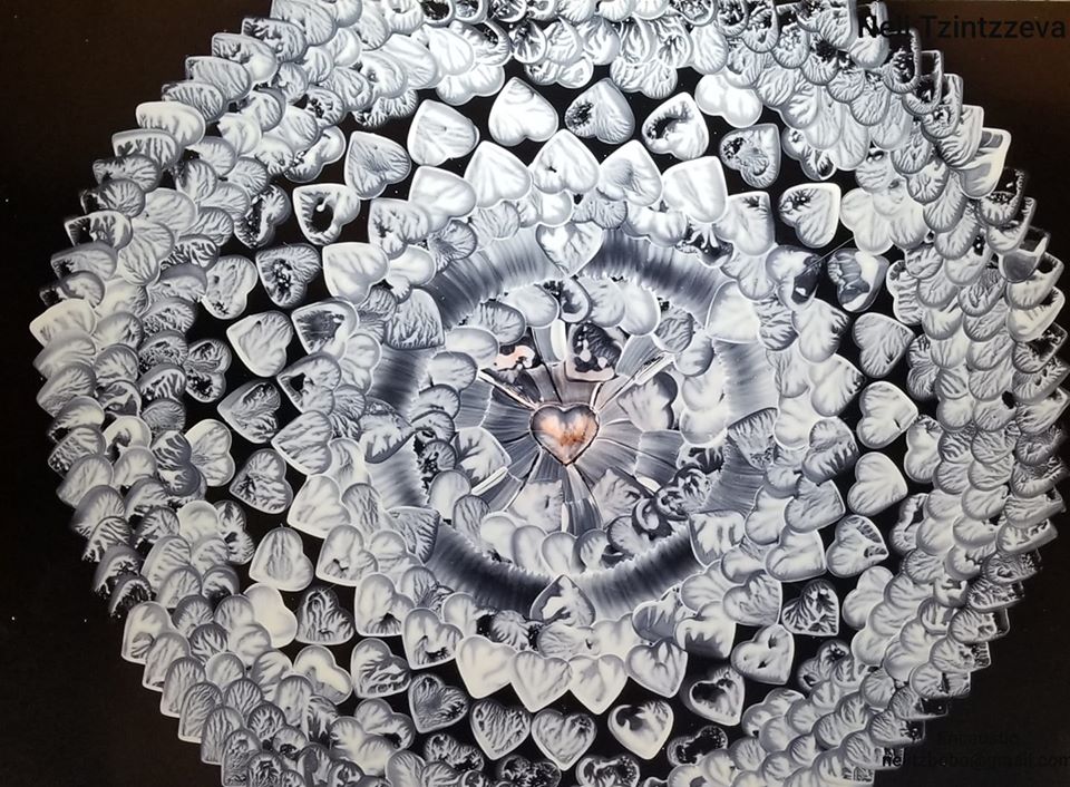 “We Today” encaustic – wax paints, hologram black cardboard Encaustic art-Neli Tzintzeva 3A- 190$